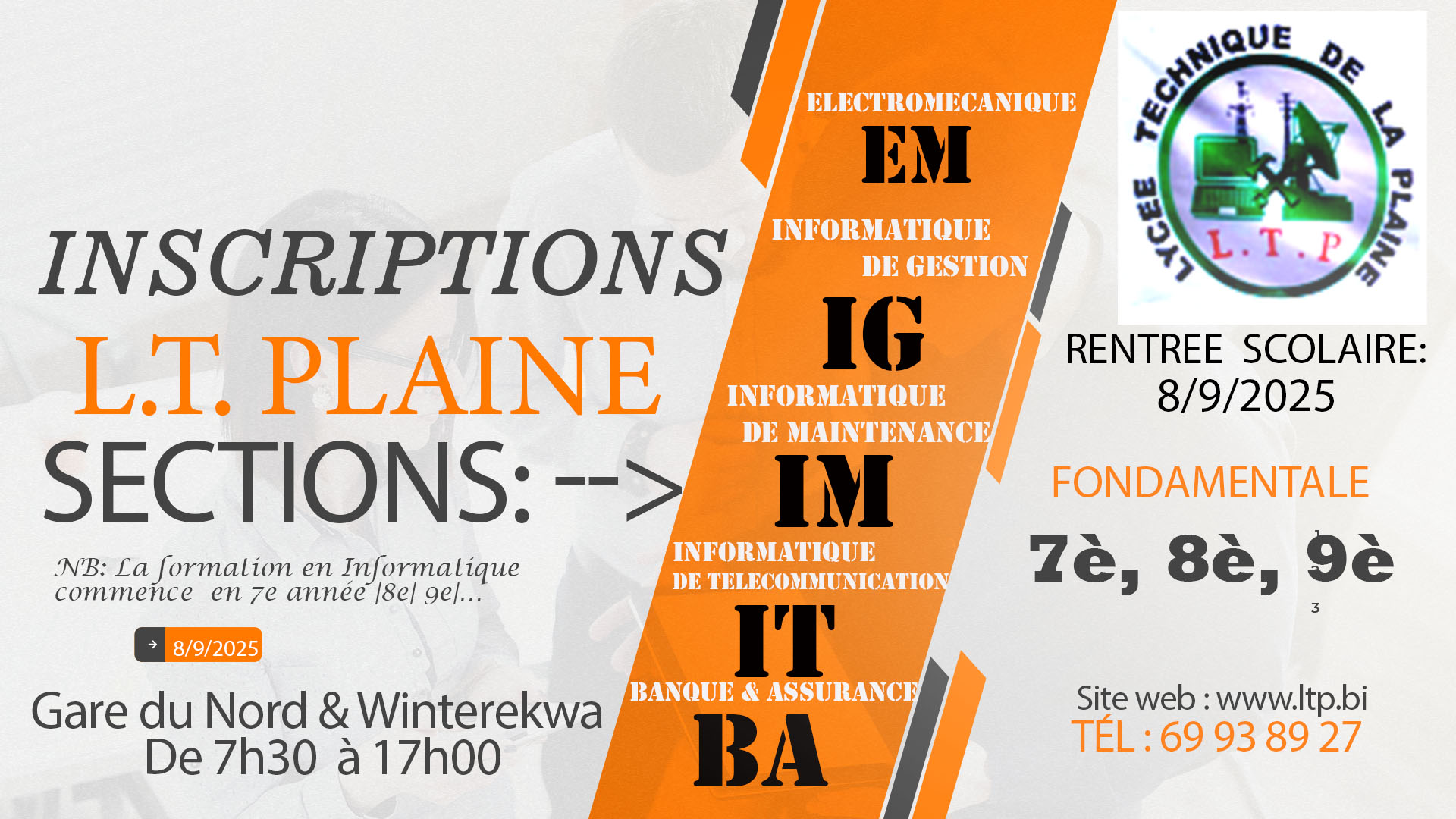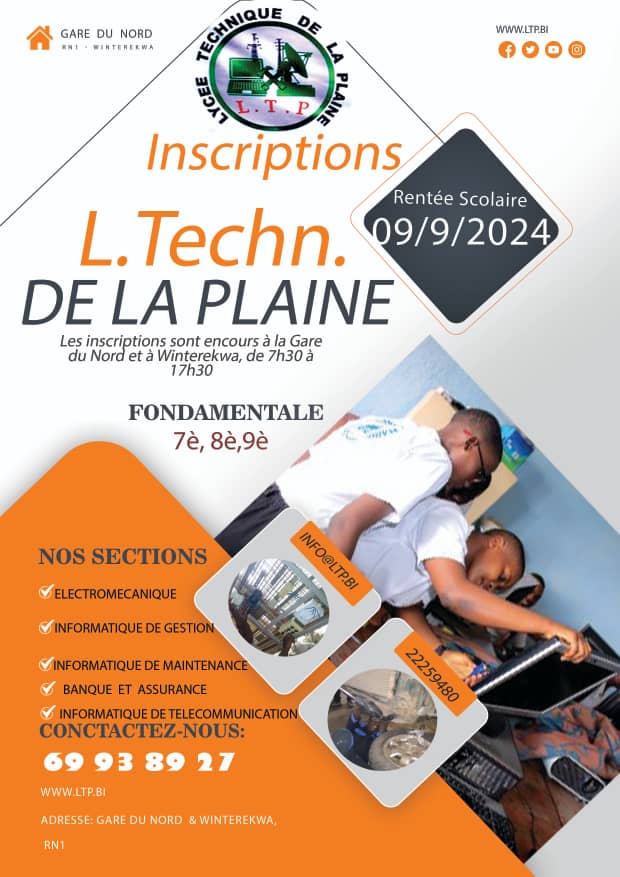 Lycée Technique de la Plaine, le meilleur en Technique, Offre une formation de Qualité en: EM,IT,IG,IM,BA..